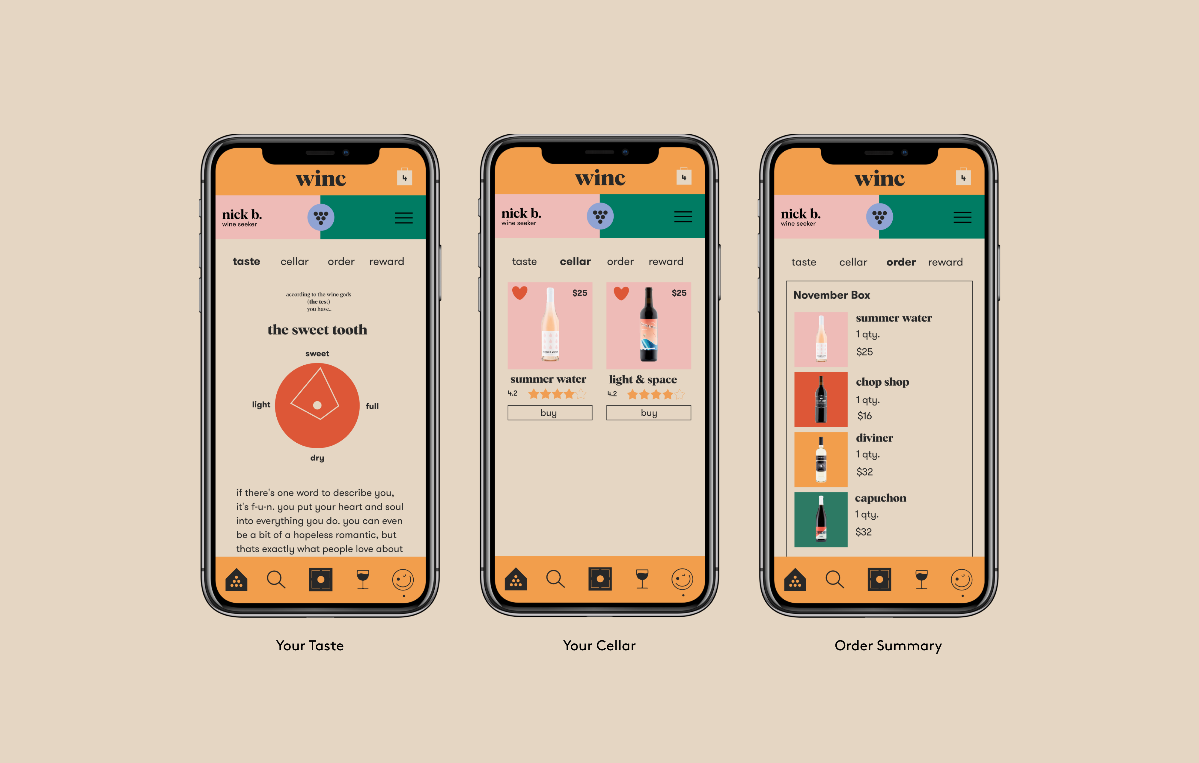Winc is an online wine subscription service that was founded in 2012 with the goal of revolutionizing the way people explore, buy, and share wine. By working directly with vineyards, independent winemakers, and customers, Winc takes a collaborative homegrown approach to creating personalized wine selections that are tailored to an individual’s taste. Winc is currently the only wine service creating and curating affordable wine selections inspired directly by customer feedback.ART DIRECTION/STRATEGY | Logan Brannen, Ivan Alvarado, Hope Stephens, Selena Contreras
