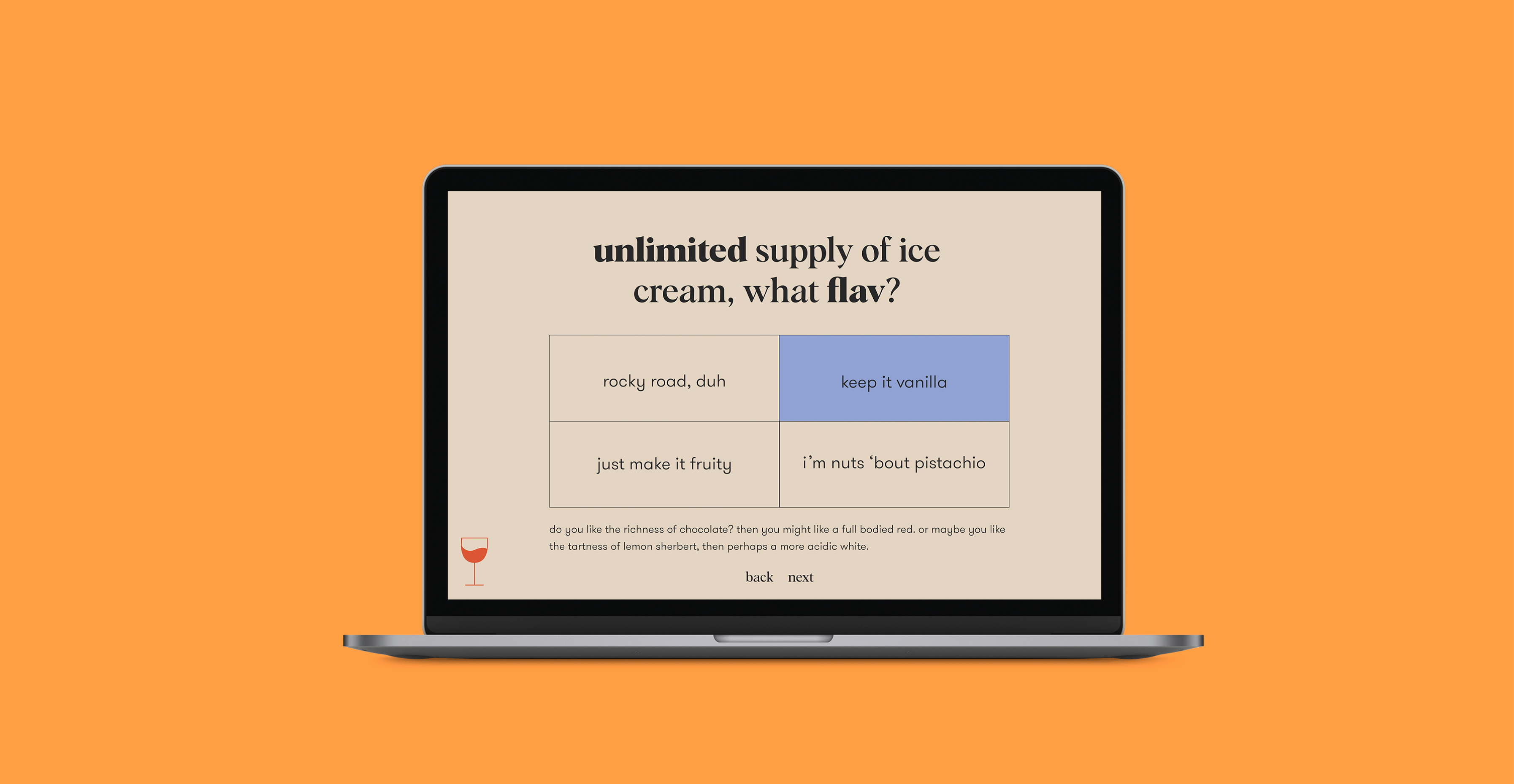 In order to ensure that the visual brand and messaging tone was carried through on digital platforms, we decided to update the Winc website and palate quiz. The aim of redesigning the Winc palate quiz was to rewrite the questions to be more playful, informative, and relevant to understanding the user’s taste preferences.